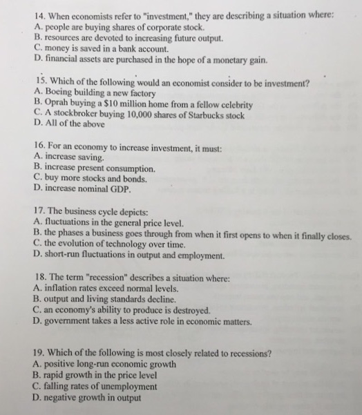 When economists refer to investment they mean the purchasing of stocks and bonds and other types of saving. Start studying chapter 6.